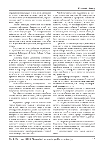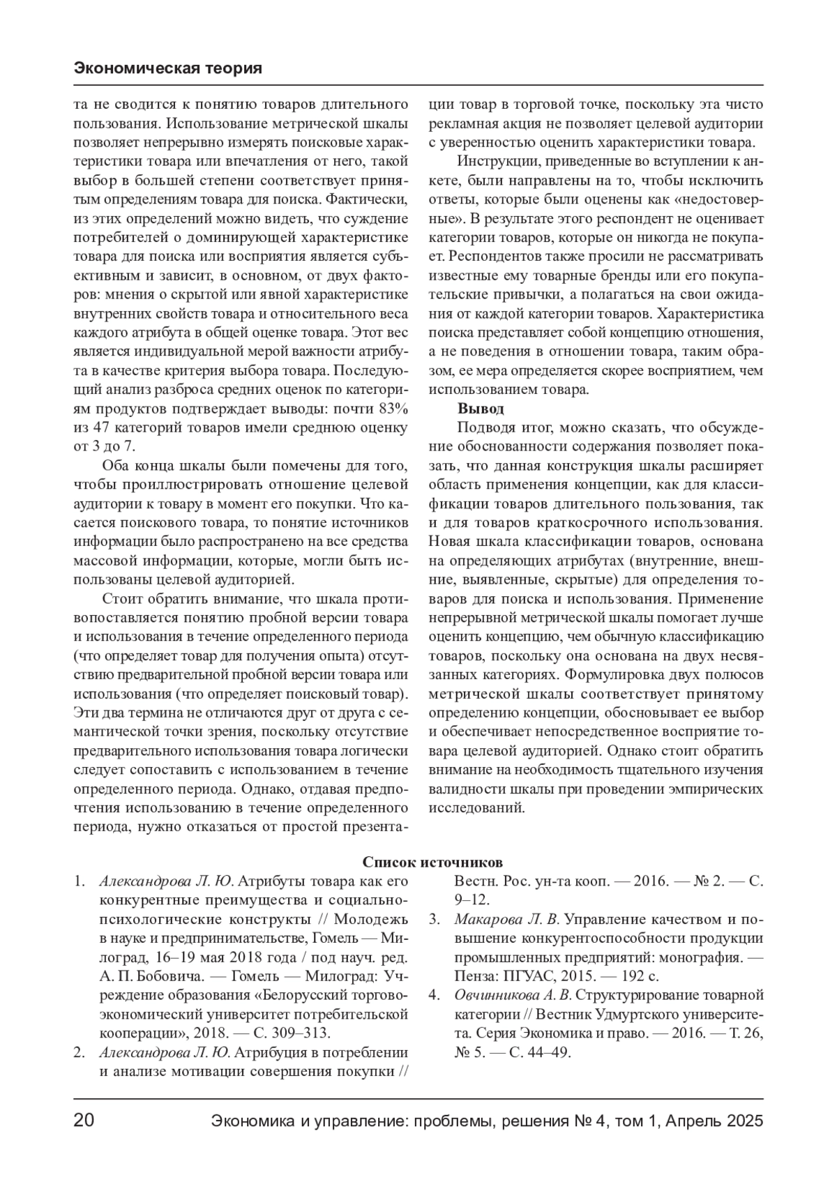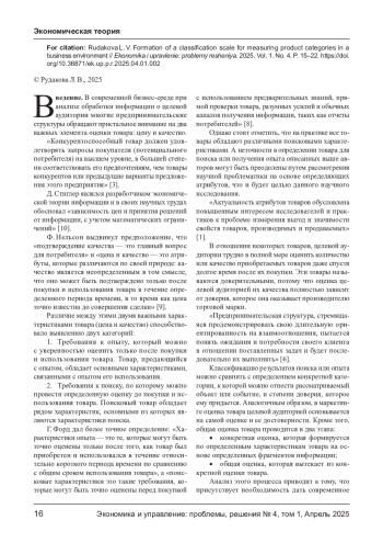 РУДАКОВА Л. В. ФОРМИРОВАНИЕ КЛАССИФИКАЦИОННОЙ ШКАЛЫ ИЗМЕРЕНИЯ КАТЕГОРИЙ ТОВАРОВ В БИЗНЕС-СРЕДЕ // ЭКОНОМИКА И УПРАВЛЕНИЕ: ПРОБЛЕМЫ, РЕШЕНИЯ. 2025. ТОМ 1 № 4