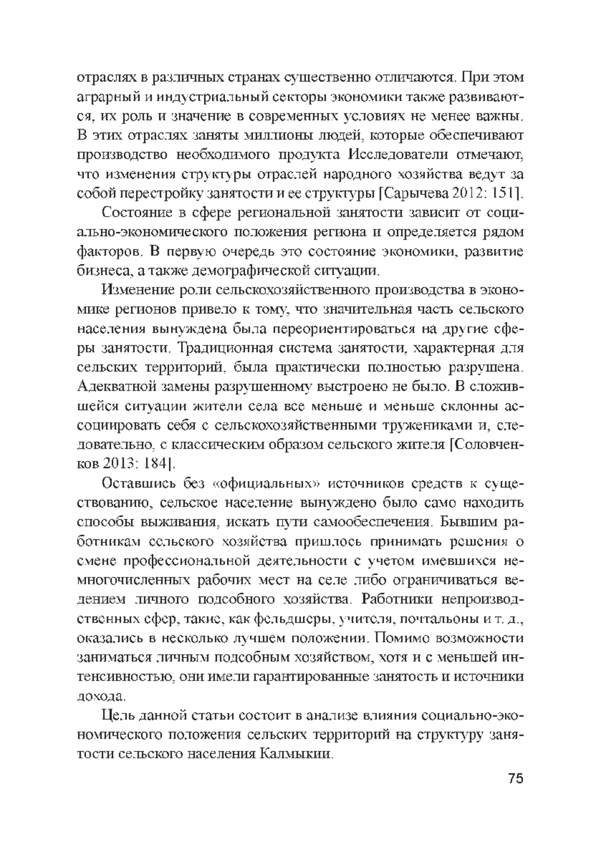 3. Соловченков С. А. Трансформация структуры занятости сельского населения Приамурья в современных российских условиях // Журнал социологии и социальной антропологии. 2013. № 4. Т. 16. С. 184-188.