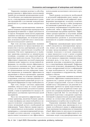 Статья: РАЗВИТИЕ СИСТЕМЫ УПРАВЛЕНИЯ ЗНАНИЯМИ КАК СТРАТЕГИЧЕСКОЕ ПРЕИМУЩЕСТВО СОВРЕМЕННОГО ПРЕДПРИЯТИЯ (2025)