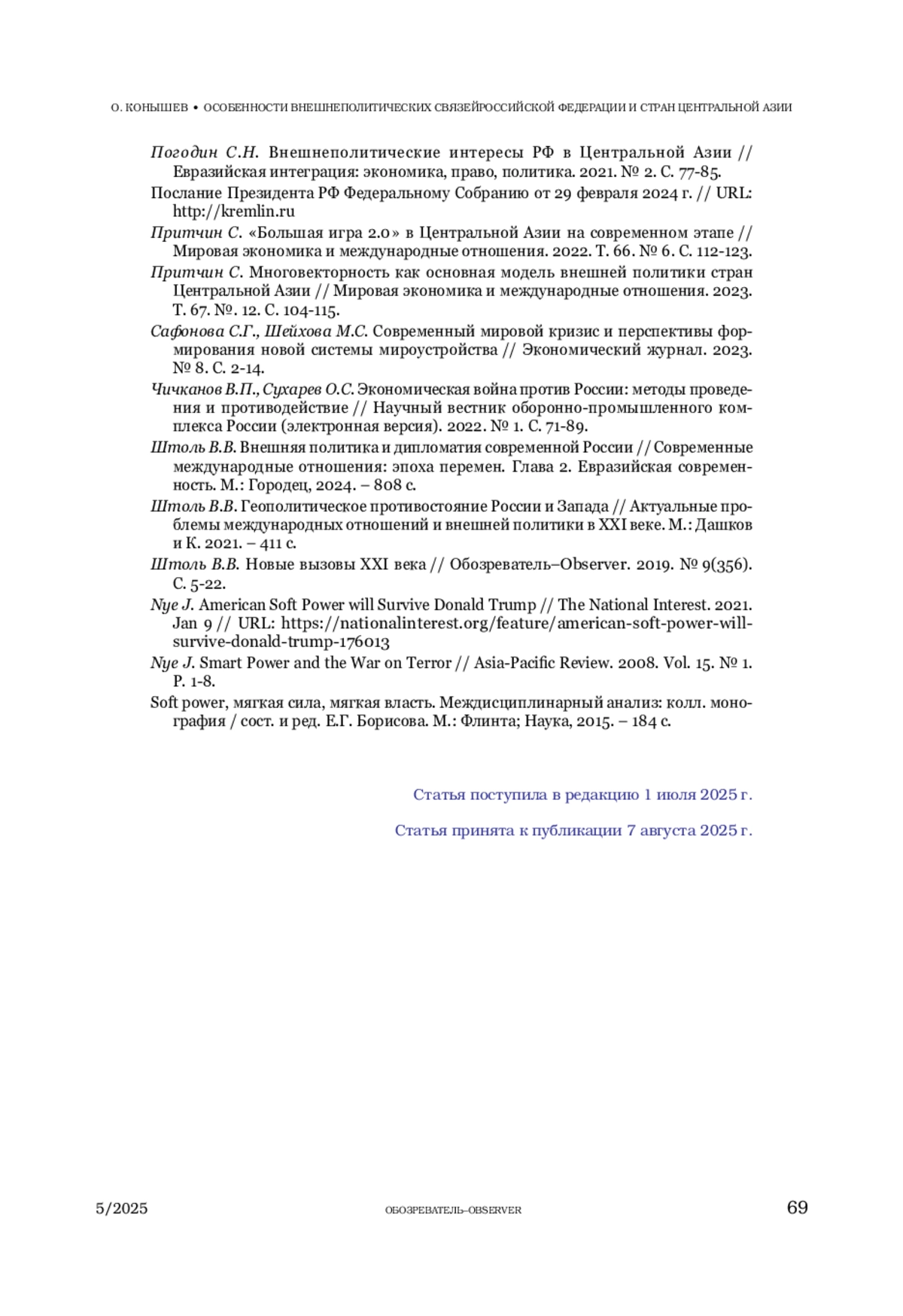 4. Адещенко П.С. «Мягкая сила» России в Казахстане: культурные и экономические аспекты // Социально-политические науки. 2024. № 1. С. 35-40.