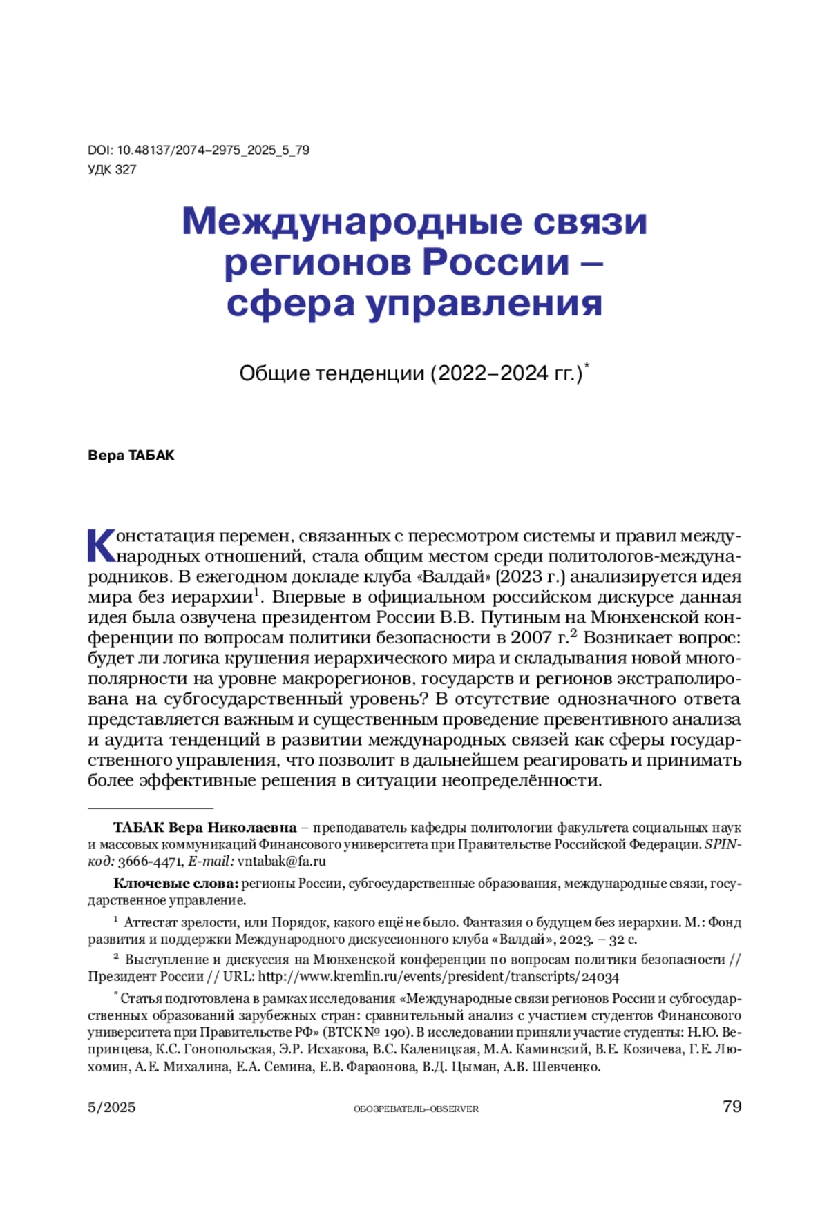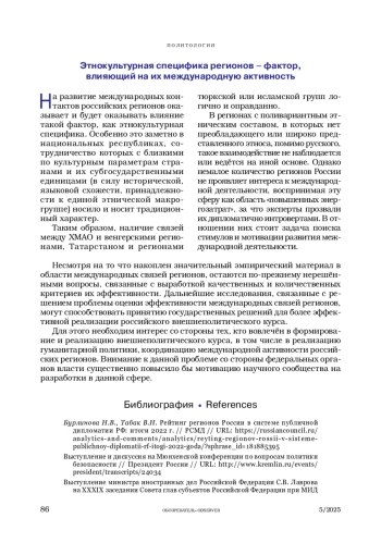 1. Бурлинова Н.В., Табак В.Н. Рейтинг регионов России в системе публичной дипломатии РФ: итоги 2022 г. // РСМД // URL: https://russiancouncil.ru/analytics-and-comments/analytics/reyting-regionov-rossii-v-sistemepublichnoy-diplomatii-rf-itogi-2022-goda/?sphrase_id=181885395