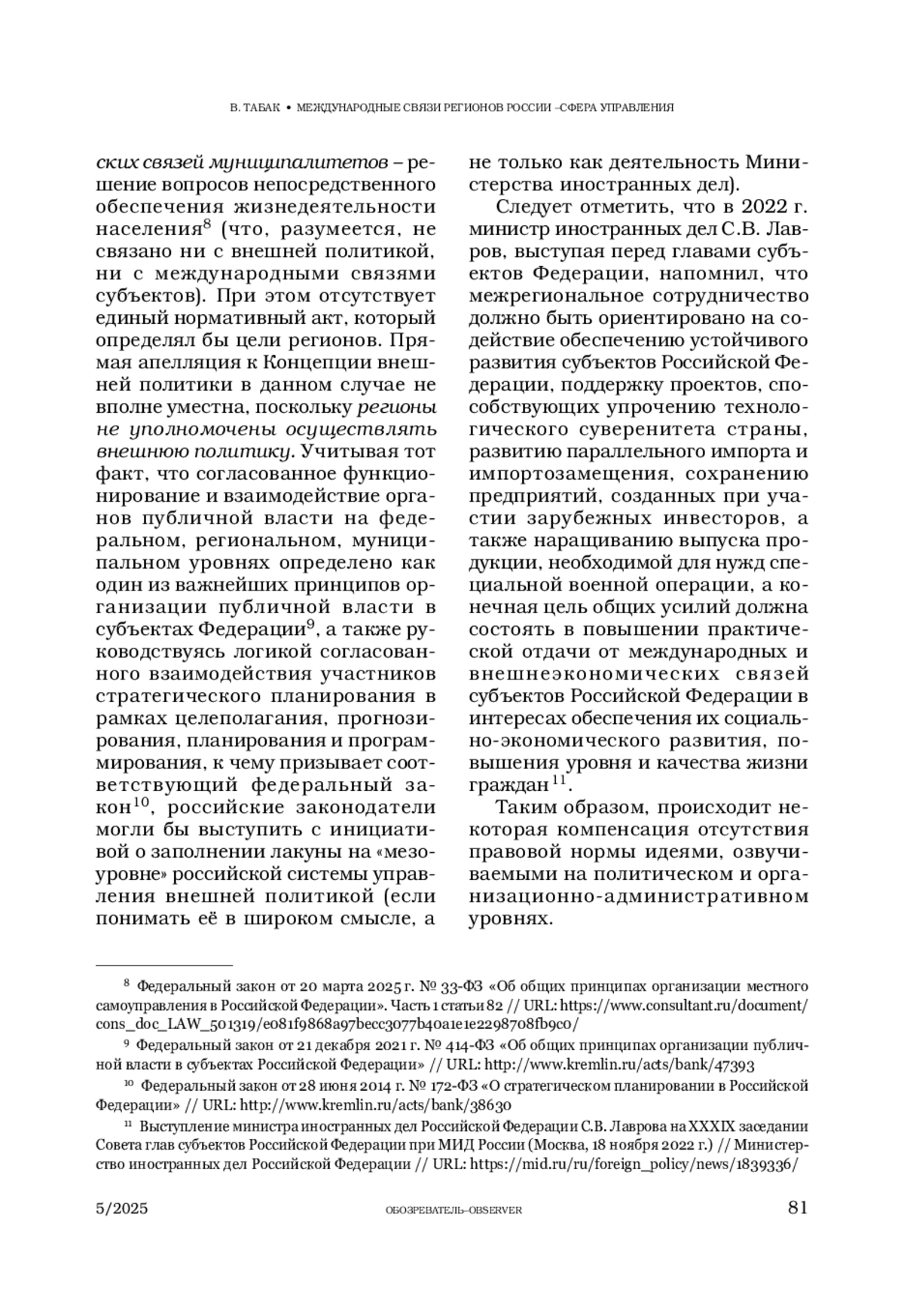 3. Выступление министра иностранных дел Российской Федерации С.В. Лаврова на XXXIX заседании Совета глав субъектов Российской Федерации при МИД России (Москва, 18 ноября 2022 г.) // Министерство иностранных дел Российской Федерации // URL: https://mid.ru/ru/foreign_policy/news/1839336