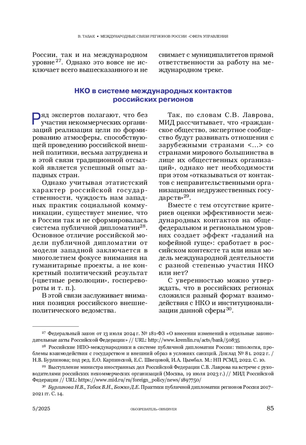 4. Выступление министра иностранных дел Российской Федерации С.В. Лаврова на встрече с руководителями российских некоммерческих организаций (Москва, 19 июля 2023 г.) // МИД Российской Федерации // URL: https://www.mid.ru/ru/foreign_policy/news/1897750