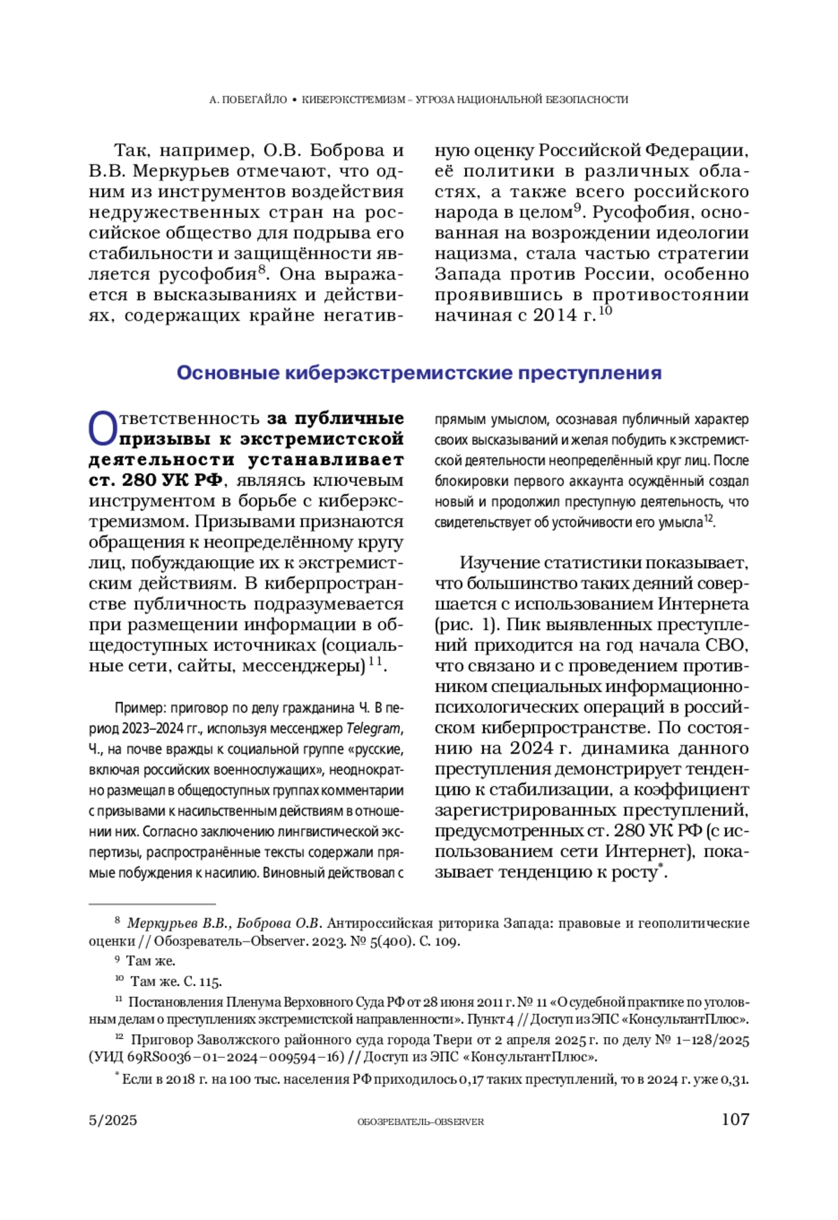 Киберэкстремизм – одна из ключевых угроз национальной безопасности России. На основе статистических данных и материалов правоприменительной практики исследуются тенденции и особенности данного вида преступности. Предлагаются пути совершенствования мер противодействия, включая профилактическую работу и внедрение современных технологий.
