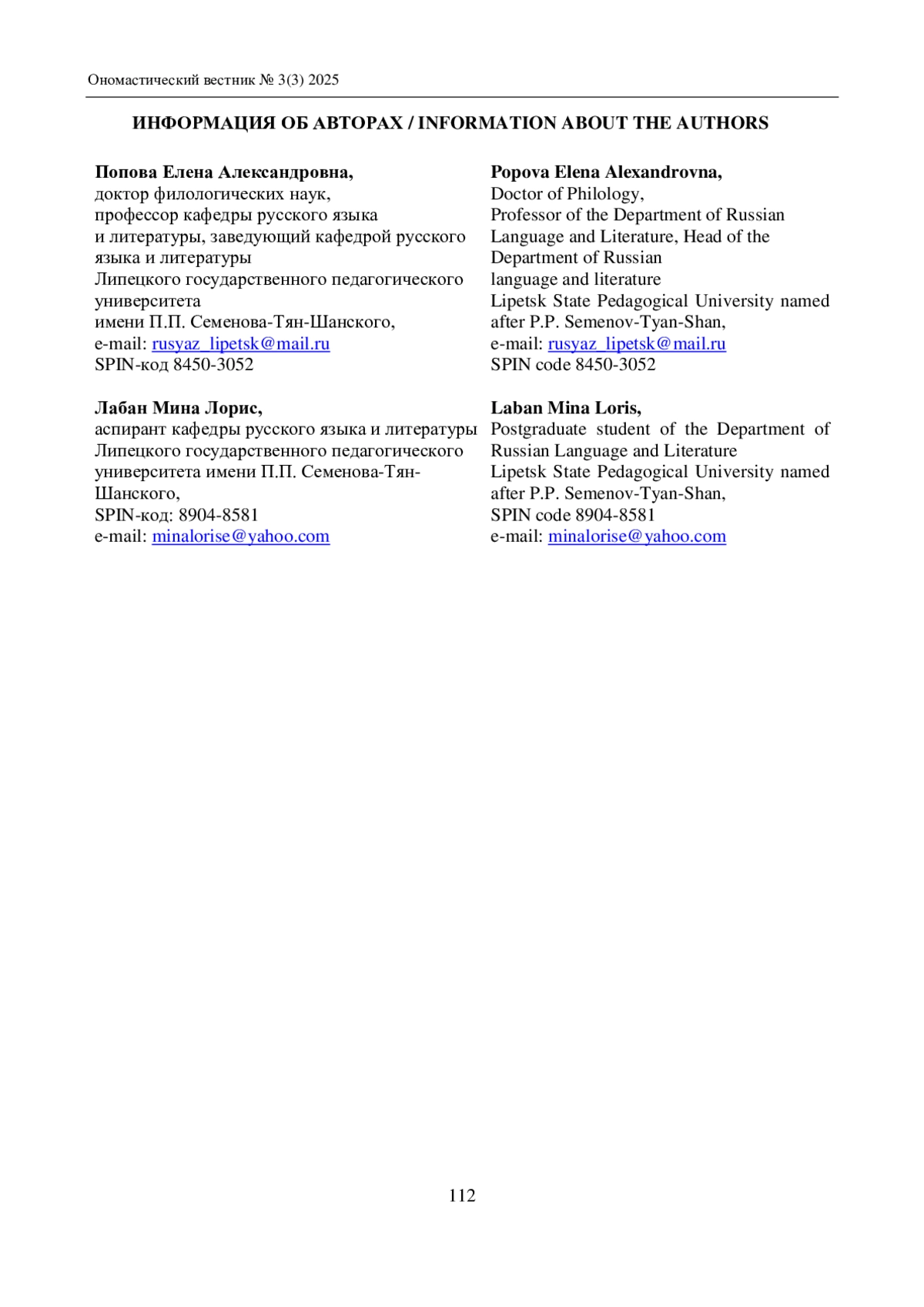 Журнал: ОНОМАСТИЧЕСКИЙ ВЕСТНИК