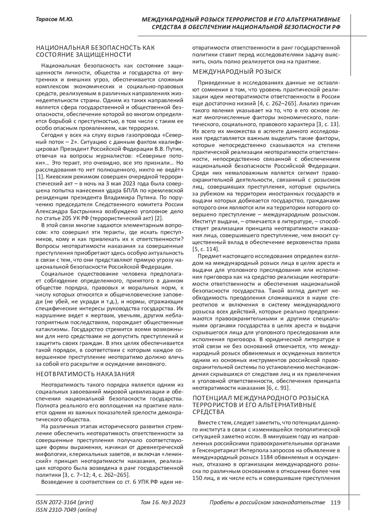 4. Сабитов Т.Р. Принцип неотвратимости наказания и его трансформация в уголовно-правовой науке и законодательстве // Актуальные проблемы российского права. 2010. № 3. С. 261-269. EDN: NWHAVV