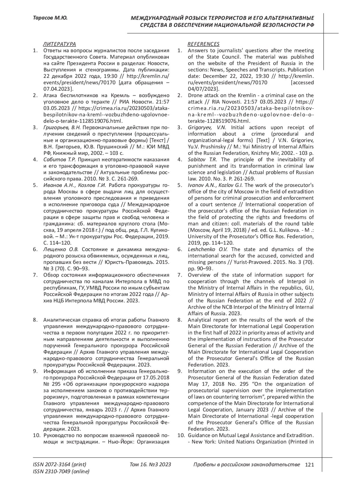 Information on the execution of the order of the Prosecutor General of the Russian Federation dated May 17, 2018 No. 295 “On the organization of prosecutorial supervision over the implementation of laws on countering terrorism”, prepared within the competence of the Main Directorate for International Legal Cooperation, January 2023 // Archive of the Main Directorate of International -legal cooperation of the Prosecutor General’s Office of the Russian Federation. 2023.