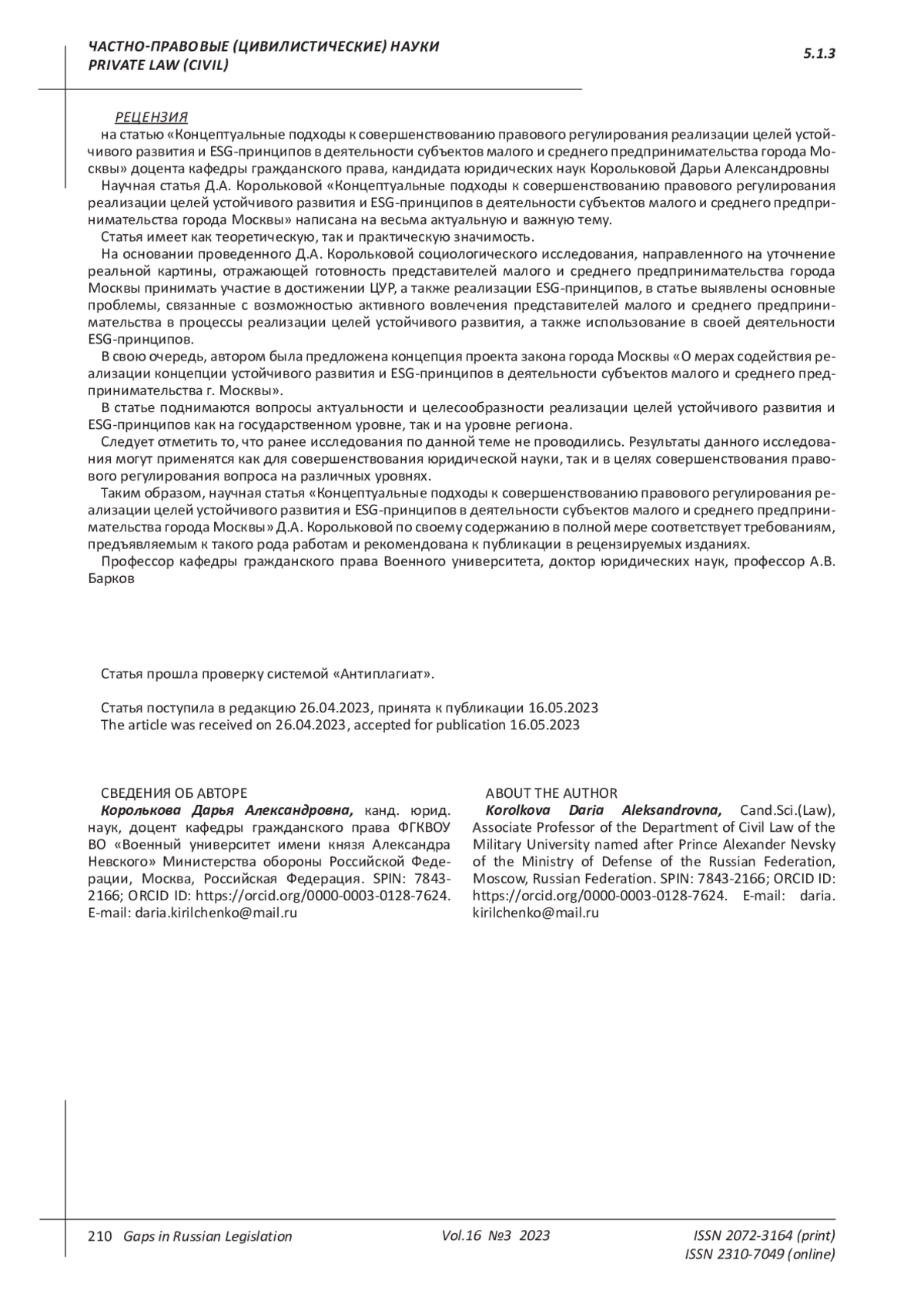7. Мажорина М.В. ESG-принципы в международном бизнесе и “устойчивые контракты” // Актуальные проблемы российского права. 2021. №12 (133). С. 185-198. EDN: JQOOVR