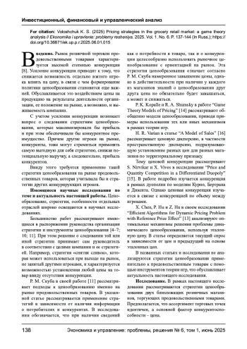 1. Гизатуллин Х. Н. Стратегические проблемы ценообразования // Журнал экономической теории. 2007. № 1. URL: https://cyberleninka.ru/article/n/strategicheskie-problemy-tsenoobrazovaniya. EDN: KYYEHP