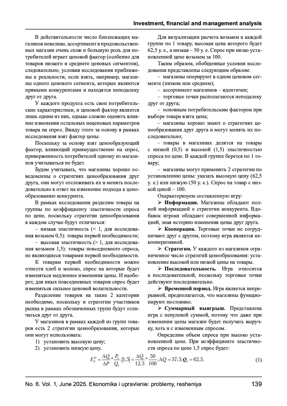 Статья посвящена стратегиям ценообразования на рынке розничной торговли с акцентом на продовольственные товары. Автор разбивает группы товаров по коэффициенту эластичности спроса по цене. В статье рассматриваются стратегии установления высокой и низкой цен для близлежащих магазинов с идентичным ассортиментом в одном ценовом сегменте. Используются методы теории игр и экономической теории для объяснения механизмов ценообразования. Выявлены наилучшие стратегии для каждой из групп товаров.