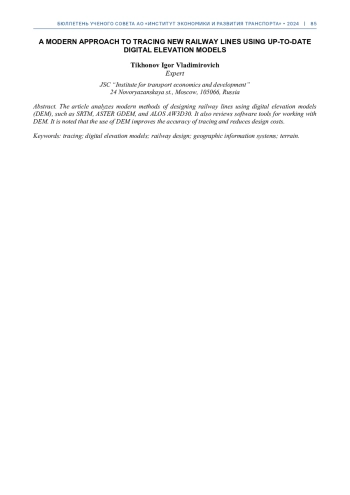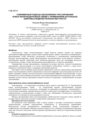 Статья: СОВРЕМЕННЫЙ ПОДХОД К ВЫПОЛНЕНИЮ ТРАССИРОВАНИЯ НОВЫХ ЖЕЛЕЗНОДОРОЖНЫХ ЛИНИЙ С ПРИМЕНЕНИЕМ АКТУАЛЬНЫХ ЦИФРОВЫХ МОДЕЛЕЙ РЕЛЬЕФА МЕСТНОСТИ (2025)