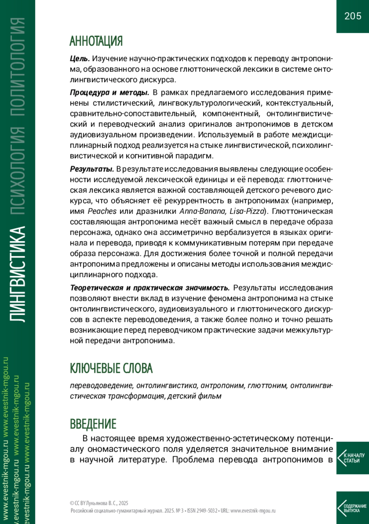 5. Марданова М. А. Перевод онимов в кинотексте мультипликации (на материале перевода мультсериала ‘Paw Patrol’ на русский язык) // Russian Linguistic Bulletin. 2023. №9. С. 1-4. https://doi.org/10.18454/RULB.2023.45.22