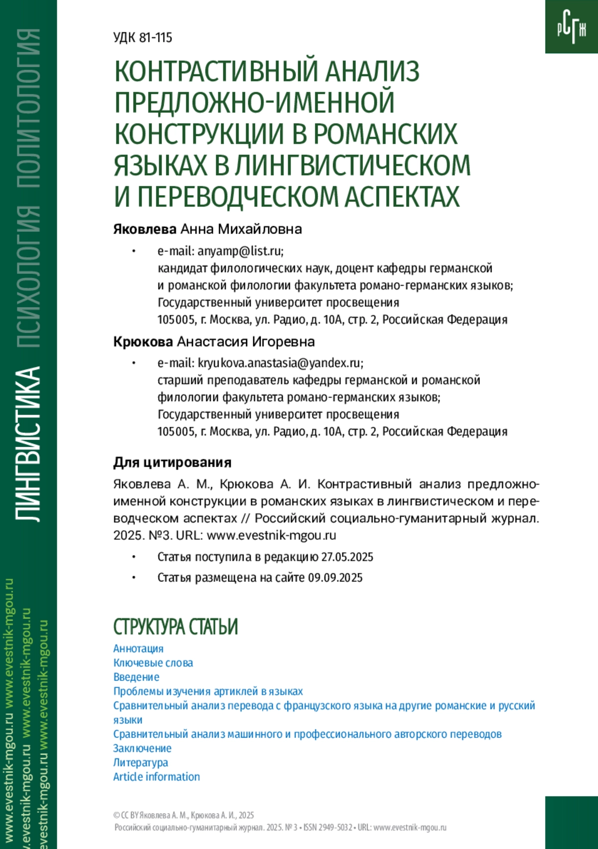 9. Яковлева А. М., Крюкова А. И. Предложно-именная конструкция в межъязыковой коммуникации // Российский социально-гуманитарный журнал. 2024. №2. URL: www.evestnik-mgou.ru (дата обращения: 03.03.2025).