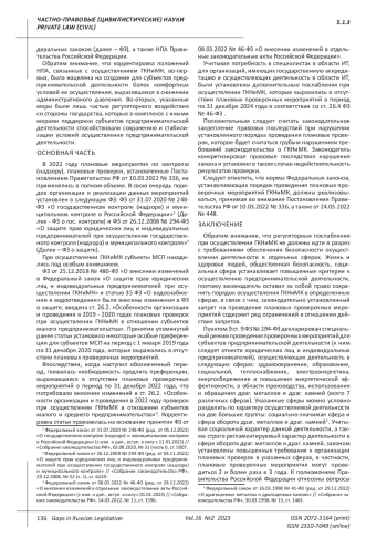 Статья: ОСОБЕННОСТИ ПРОВЕДЕНИЯ ПЛАНОВЫХ ПРОВЕРОК ПРИ ОСУЩЕСТВЛЕНИИ ГОСУДАРСТВЕННОГО КОНТРОЛЯ (НАДЗОРА) И МУНИЦИПАЛЬНОГО КОНТРОЛЯ В ОТНОШЕНИИ СУБЪЕКТОВ ПРЕДПРИНИМАТЕЛЬСКОЙ ДЕЯТЕЛЬНОСТИ В УСЛОВИЯХ НЕДРУЖЕСТВЕННЫХ ДЕЙСТВИЙ НЕКОТОРЫХ ИНОСТРАННЫХ ГОСУДАРСТВ (2023)