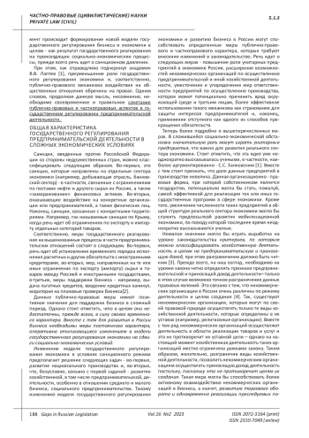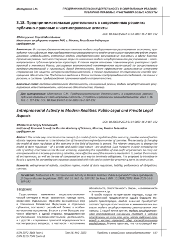 Статья: ПРЕДПРИНИМАТЕЛЬСКАЯ ДЕЯТЕЛЬНОСТЬ В СОВРЕМЕННЫХ РЕАЛИЯХ: ПУБЛИЧНО-ПРАВОВЫЕ И ЧАСТНОПРАВОВЫЕ АСПЕКТЫ (2023)