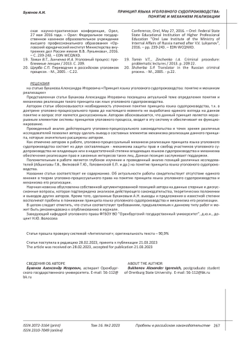 Zhoroev N.N. The principle of the language of criminal proceedings in the system of principles of the Russian criminal process // Education. Science, Scientific personnel. - 2016. No. 6. p. 51. EDN: XRIIVR