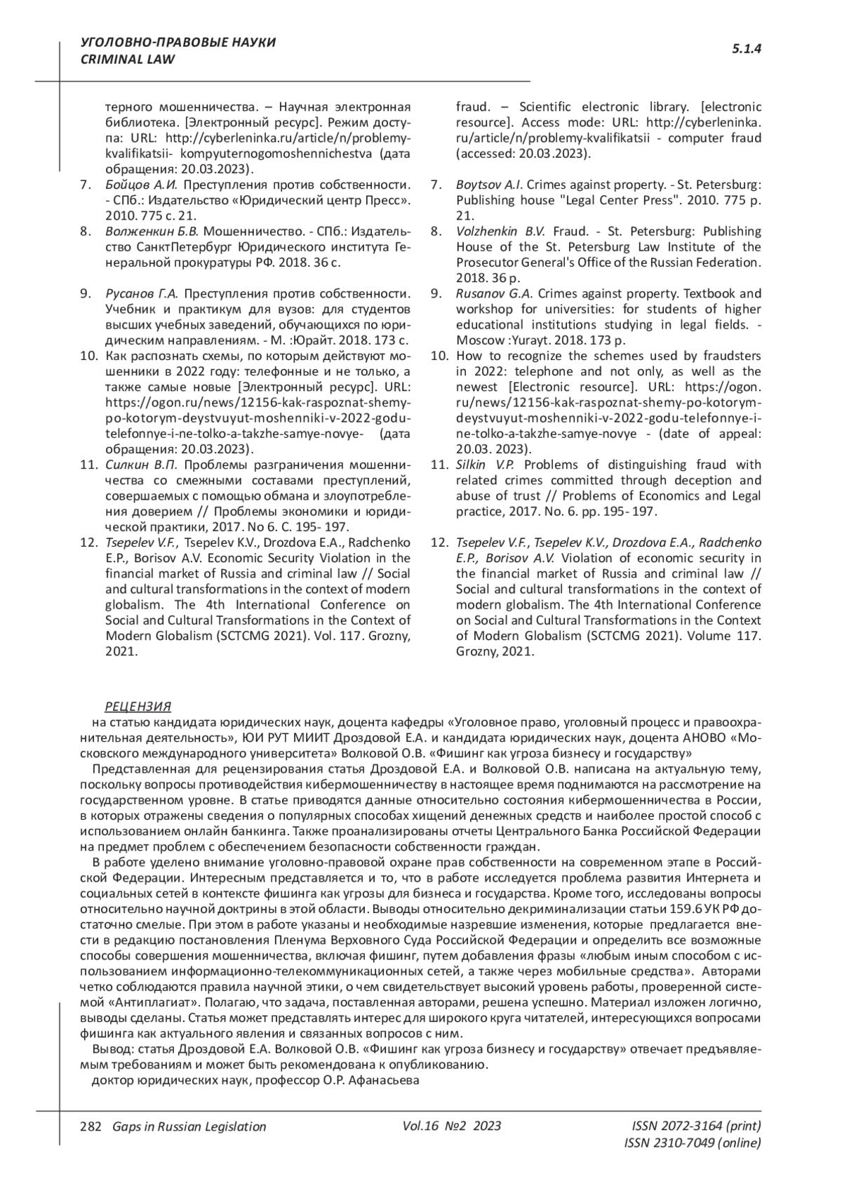 Antonov, I. O., Shalimov A. N. Actual problems of fraud investigation using computer information. [electronic resource]. Scientific Electronic Library - Access mode: URL: http://cyberleninka.ru/article/n/aktualnye-problemy-investigations-of-fraud-using-computer-information (date: 20.03.2023).