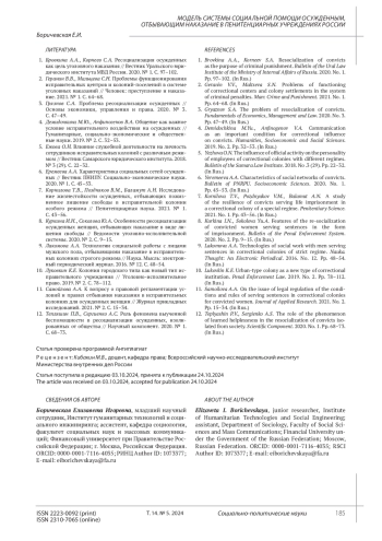 6. Еремеева А.А. Характеристика социальных сетей осужденных // Вестник ПНИПУ. Социально-экономические науки. 2020. № 1. С. 45-53. EDN: SDPYNJ