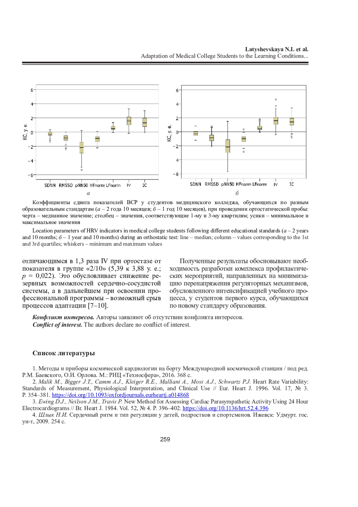 2. Malik M., Bigger J.T., Camm A.J., Kleiger R.E., Malliani A., Moss A.J., Schwartz P.J. Heart Rate Variability: Standards of Measurement, Physiological Interpretation, and Clinical Use // Eur. Heart J. 1996. Vol. 17, No 3. P. 354-381. DOI: 10.1093/oxfordjournals.eurheartj.a014868 EDN: INRSWB
