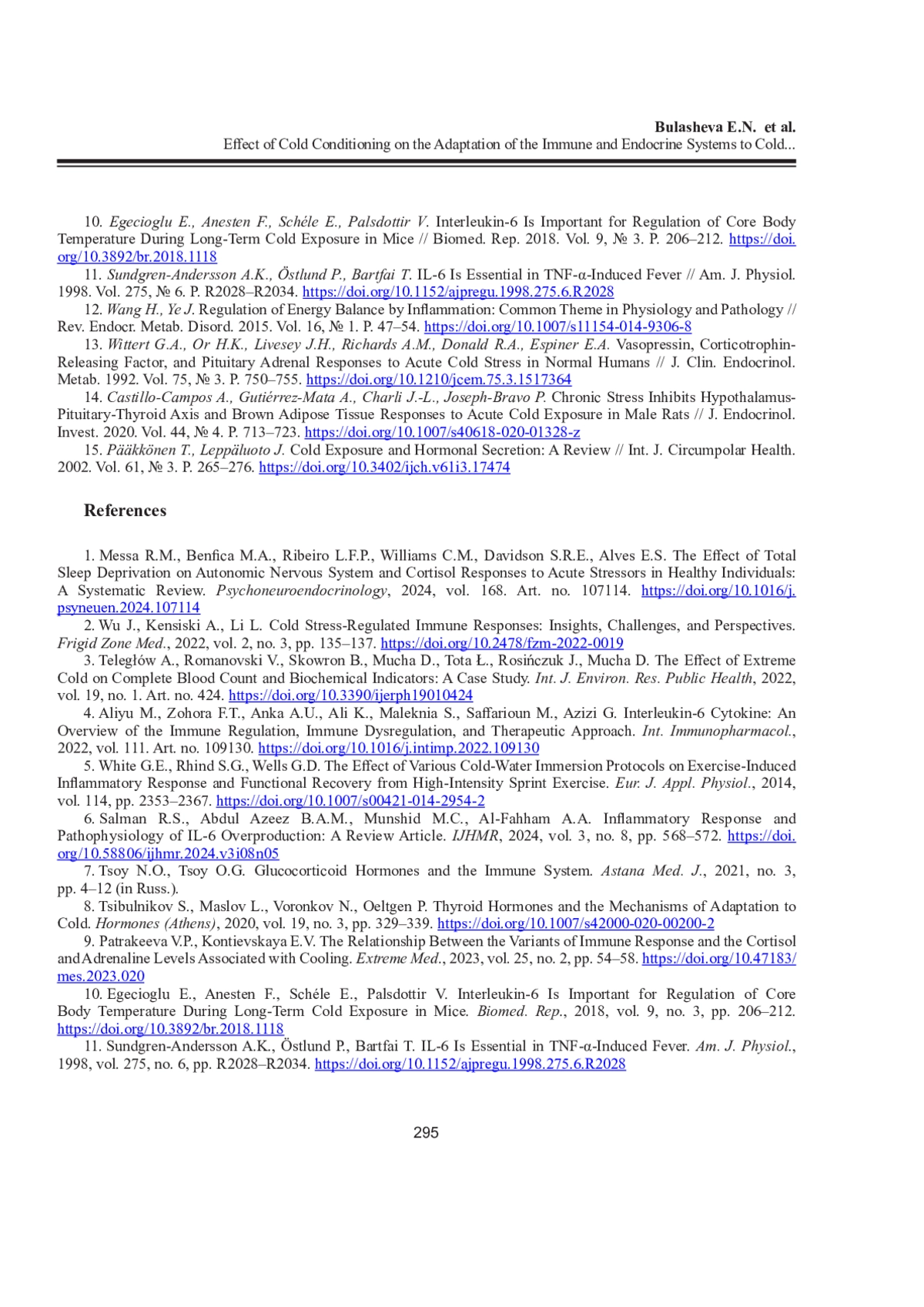 15. Pääkkönen T., Leppäluoto J. Cold Exposure and Hormonal Secretion: A Review // Int. J. Circumpolar Health. 2002. Vol. 61, No 3. P. 265-276. DOI: 10.3402/ijch.v61i3.17474