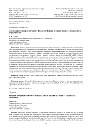 Введение. Современное глобализированное общество требует от образовательных систем гибкости и способности быстро адаптироваться к изменениям в экономике и на рынке труда. В этом контексте сотрудничество между Россией и Китаем в области профессионального образования приобретает все большее значение.