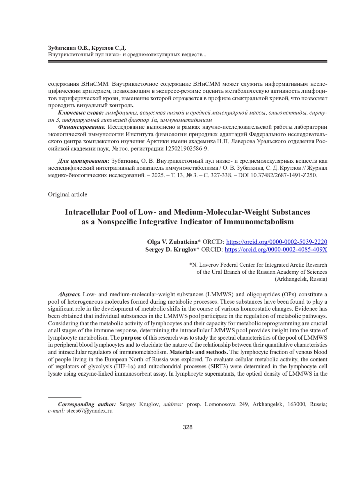 21. Губкина Л.В., Самодова А.В., Добродеева Л.К. Балашова С.Н., Пашинская К.О. Особенности клеточных и гуморальных иммунных реакций у жителей Европейского Севера и Арктики // Якут. мед. журн. 2022. No 4 (80). С. 87-90. DOI: 10.25789/YMJ.2022.80.23