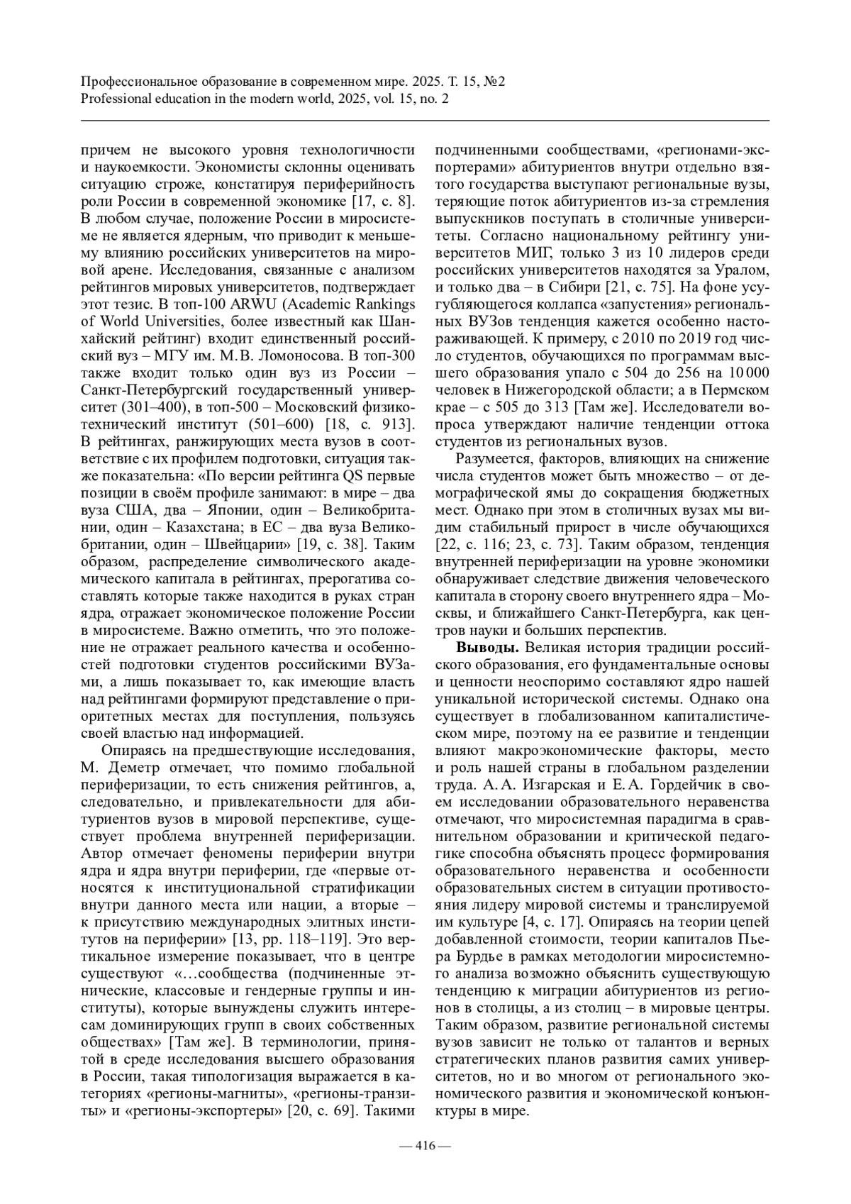 13. Demeter M. The World-Systemic Dynamics of Knowledge Production: The Distribution of Transnational Academic Capital in the Social Sciences // Journal of World-System Research. 2019. Vol. 25, № 1. pp. 111-144. https://doi.org/10.5195/JWSR.2019.887
