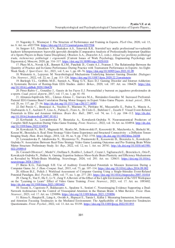 25. Lewandowska P., Jakubowska N., Hryniewicz N., Prusinowski R., Kossowski B., Brzezicka A., Kowalczyk-Grębska N. Association Between Real-Time Strategy Video Game Learning Outcomes and Pre-Training Brain White Matter Structure: Preliminary Study // Sci. Rep. 2022. Vol. 12, No 1. Art. No 20741. DOI: 10.1038/s41598-022-25099-0 EDN: AZHELL