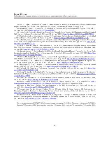 34. Trotter M.G., Coulter T.J., Davis P.A., Poulus D.R., Polman R. Social Support, Self-Regulation, and Psychological Skill Use in е-Athletes // Front. Psychol. 2021. Vol. 12. Art. No 722030. DOI: 10.3389/fpsyg.2021.722030 EDN: MISALD