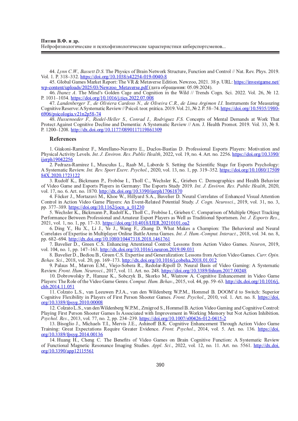 1. Giakoni-Ramírez F., Merellano-Navarro E., Duclos-Bastías D. Professional Esports Players: Motivation and Physical Activity Levels // Int. J. Environ. Res. Public Health. 2022. Vol. 19. No 4. Art. No 2256. DOI: 10.3390/ijerph19042256