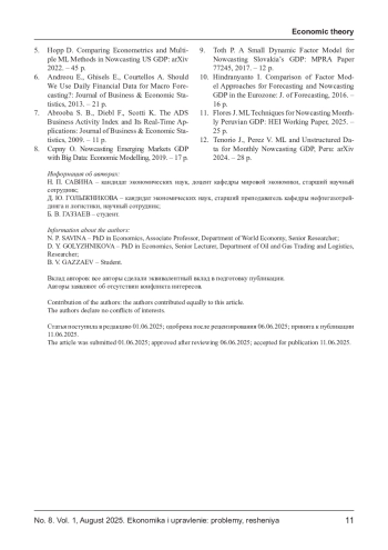 5. Хопп Д. Сравнение эконометрии и многих методов ML в задачах nowcasting ВВП США: arXiv 2022. - 45 с.