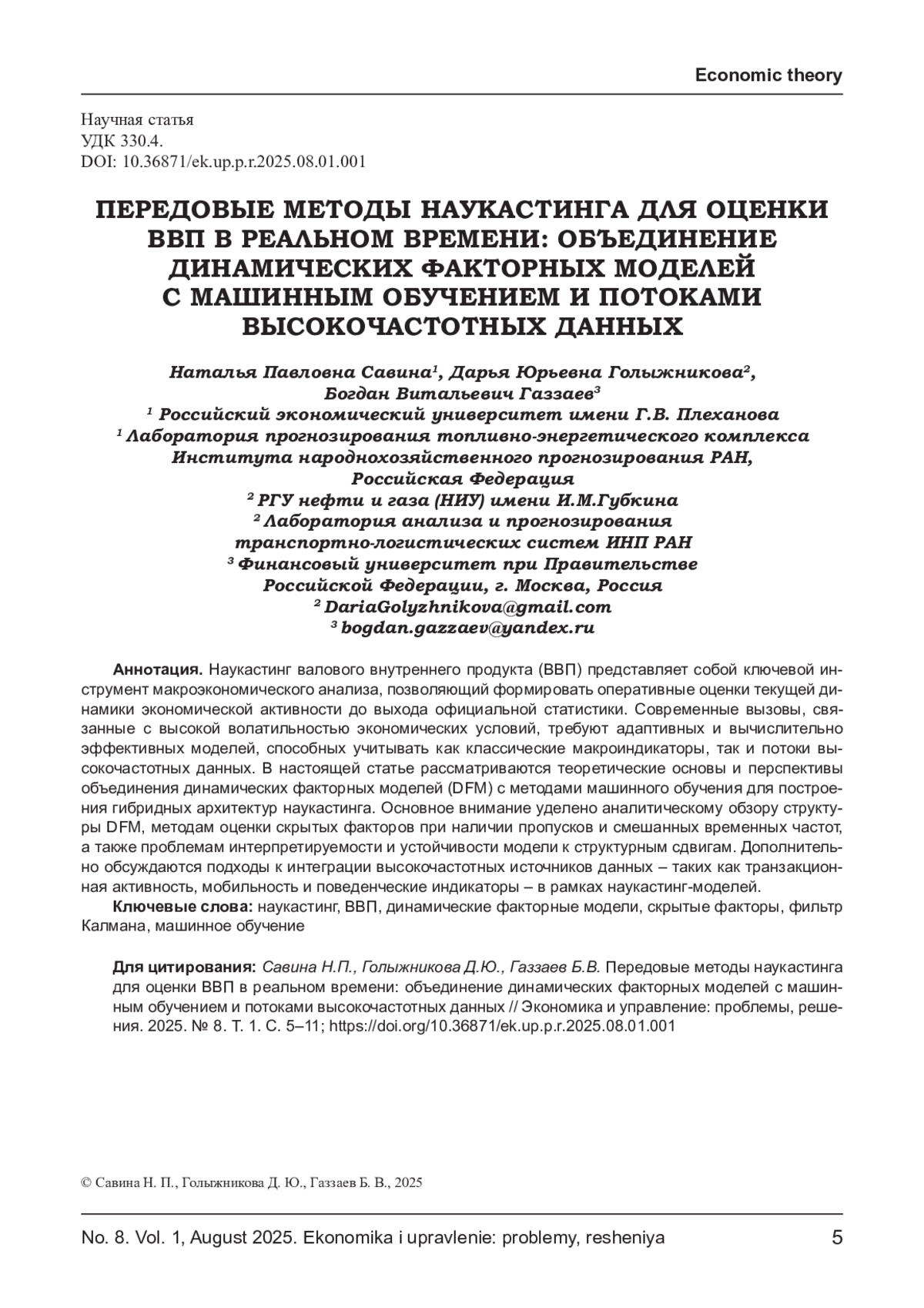 8. Цепни О. Наукастинг ВВП развивающихся рынков с big data: Economic Modelling, 2019. - 17 с.