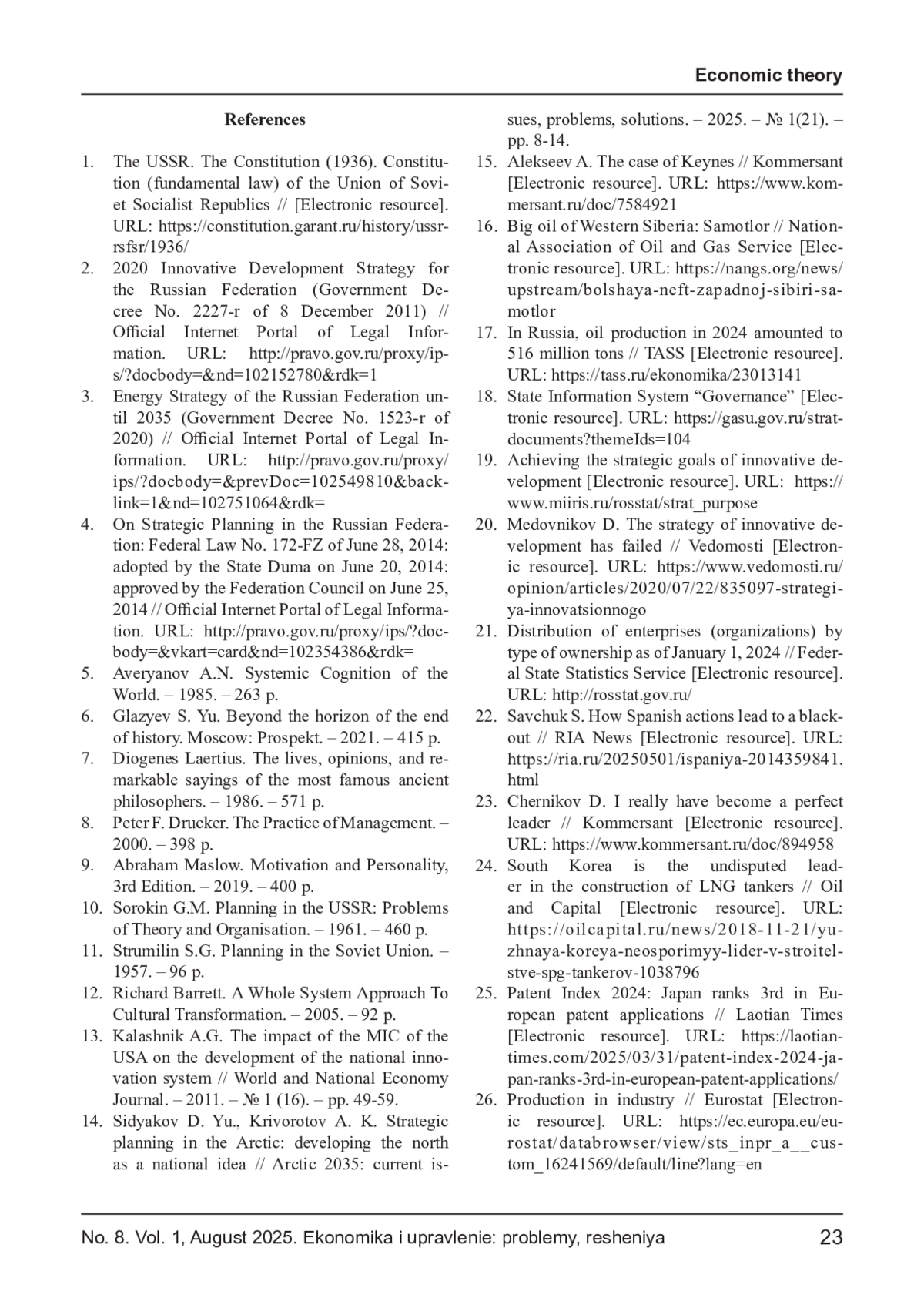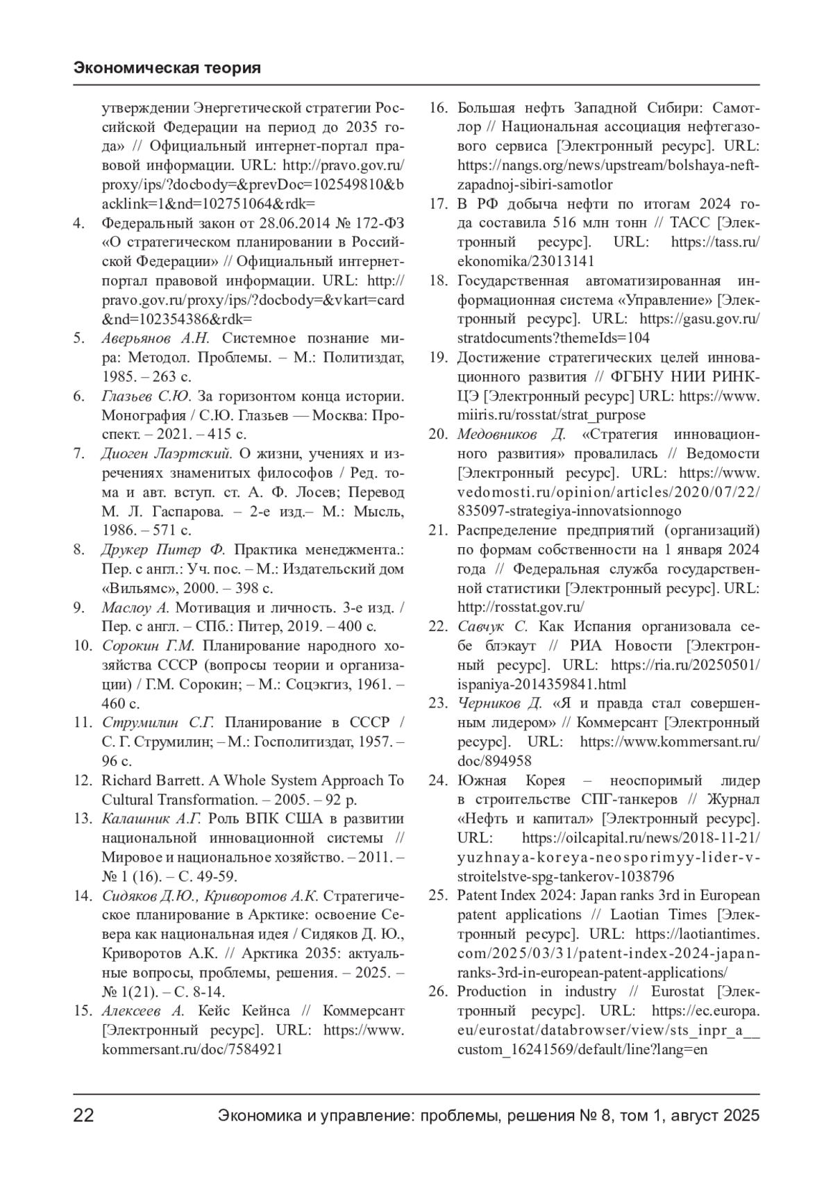 14. Сидяков Д.Ю., Криворотов А.К. Стратегическое планирование в Арктике: освоение Севера как национальная идея / Сидяков Д. Ю., Криворотов А.К. // Арктика 2035: актуальные вопросы, проблемы, решения. - 2025. - № 1(21). - С. 8-14. EDN: FBDDDE