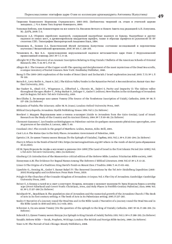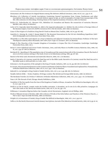 52. Yellin A. On the Newly Discovered Jewish Ossuary Inscriptions // Journal of the Palestine Oriental Society. 1929. Т. 9. P. 41-44.