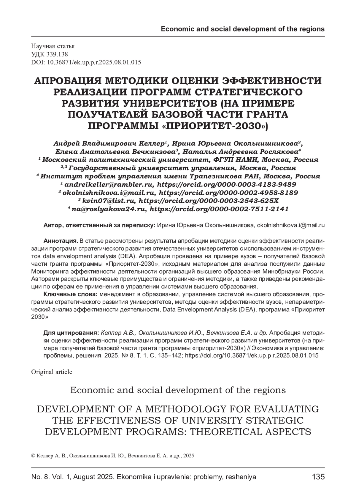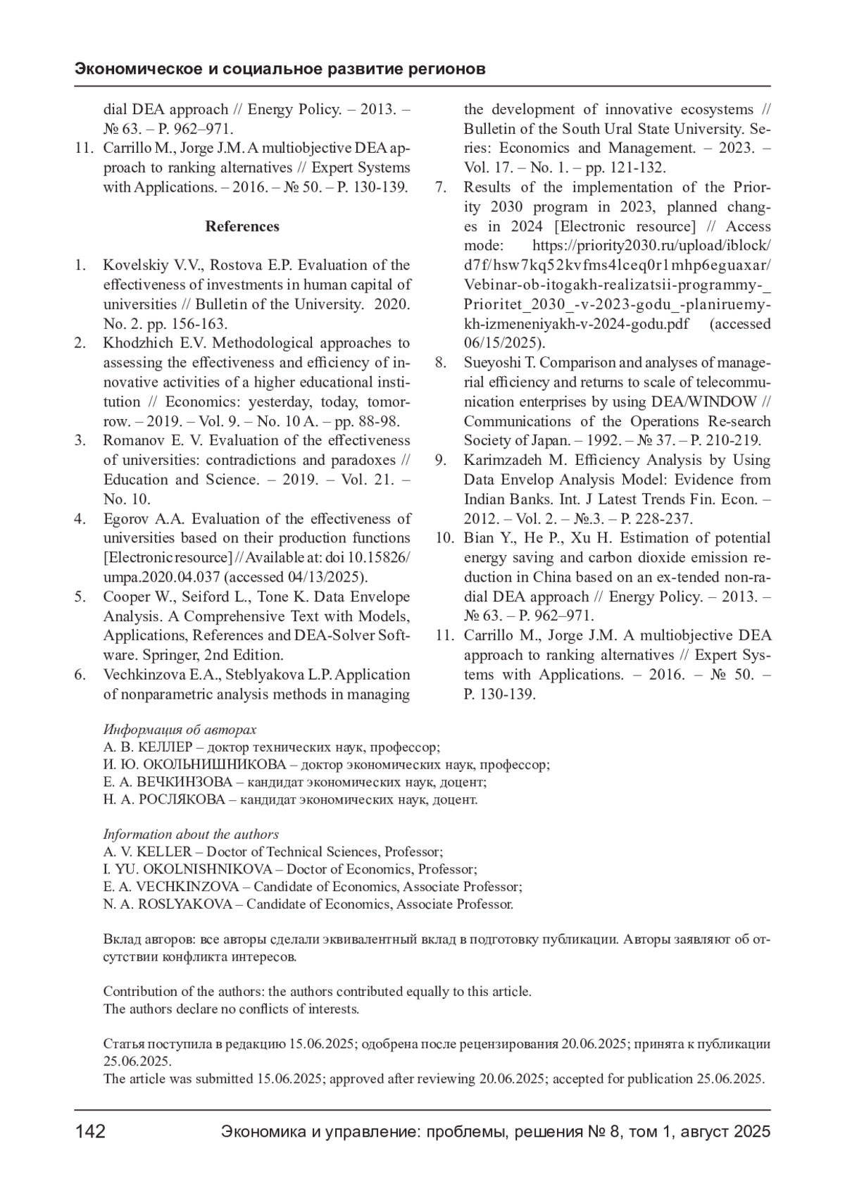 4. Егоров А.А. Оценка эффективности деятельности университетов на основе их производственных функций [Электронный ресурс] // Режим доступа: 10.15826/umpa.2020.04.037 (дата обращения 13.04.2025 г.). DOI: 10.15826/umpa.2020.04.037(