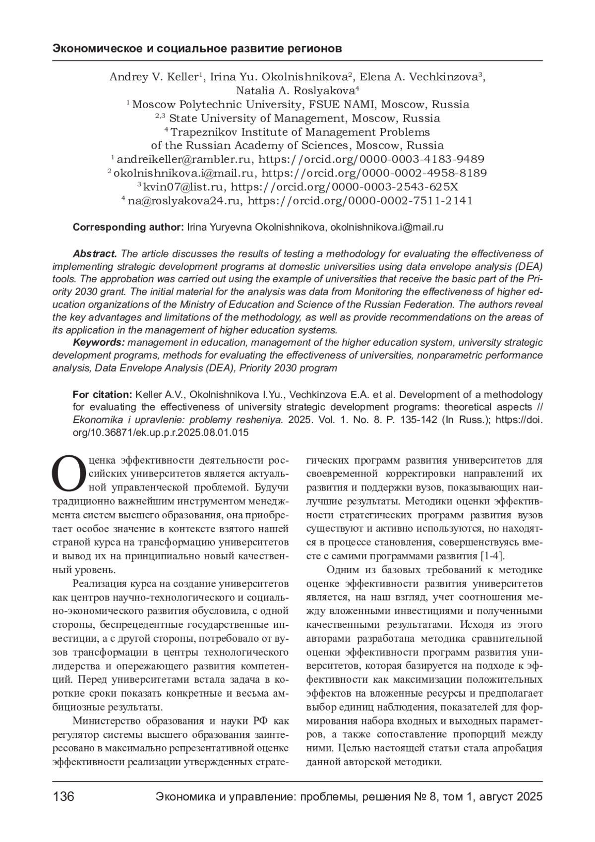 Оценка эффективности деятельности российских университетов является актуальной управленческой проблемой. Будучи традиционно важнейшим инструментом менеджмента систем высшего образования, она приобретает особое значение в контексте взятого нашей страной курса на трансформацию университетов и вывод их на принципиально новый качественный уровень.