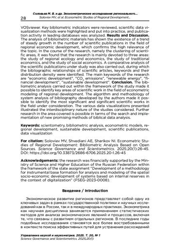 Статья: ЭКОНОМЕТРИЧЕСКИЕ ИССЛЕДОВАНИЯ РЕГИОНАЛЬНОГО РАЗВИТИЯ: БИБЛИОМЕТРИЧЕСКИЙ АНАЛИЗ НА ОСНОВЕ ОТКРЫТЫХ ИСТОЧНИКОВ (2025)