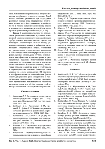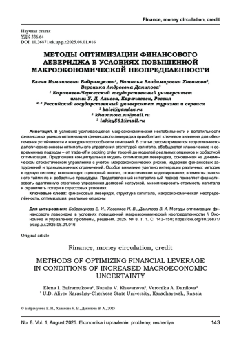 Статья: МЕТОДЫ ОПТИМИЗАЦИИ ФИНАНСОВОГО ЛЕВЕРИДЖА В УСЛОВИЯХ ПОВЫШЕННОЙ МАКРОЭКОНОМИЧЕСКОЙ НЕОПРЕДЕЛЕННОСТИ (2025)