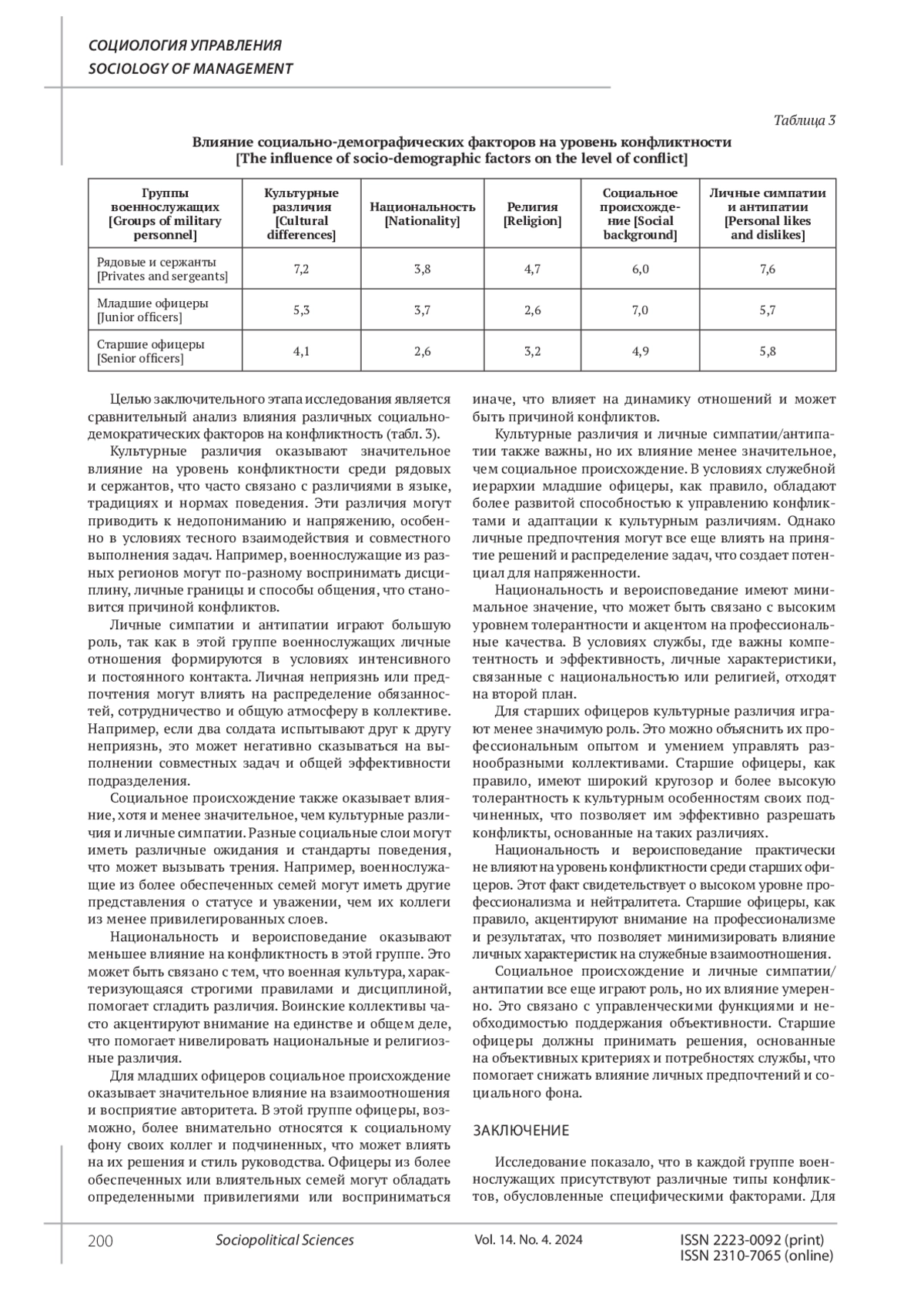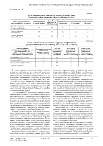 Статья: СОСТОЯНИЕ КОНФЛИКТНОСТИ УПРАВЛЕНЧЕСКОЙ СРЕДЫ В ВОИНСКИХ КОЛЛЕКТИВАХ (2024)