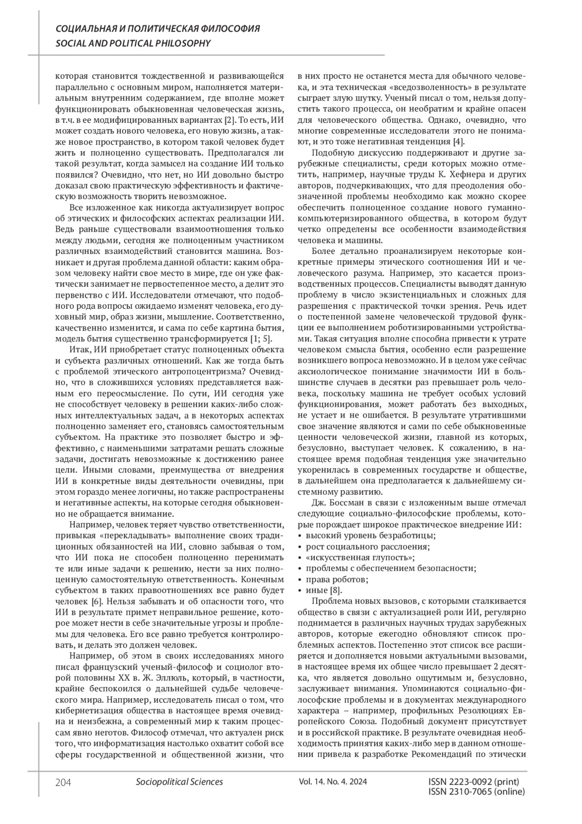 6. Разин А.В. Этика искусственного интеллекта // Философия и общество. 2019. № 15. С. 202-208. EDN: YPCXWS