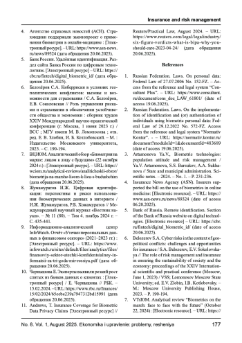 4. Агентство страховых новостей (АСН). Страховщики поддержали законопроект о применении биометрии в онлайн-медицине: [Электронный ресурс]. - URL: https://www.asn-news.ru/news/89324 (дата обращения 20.06.2025).