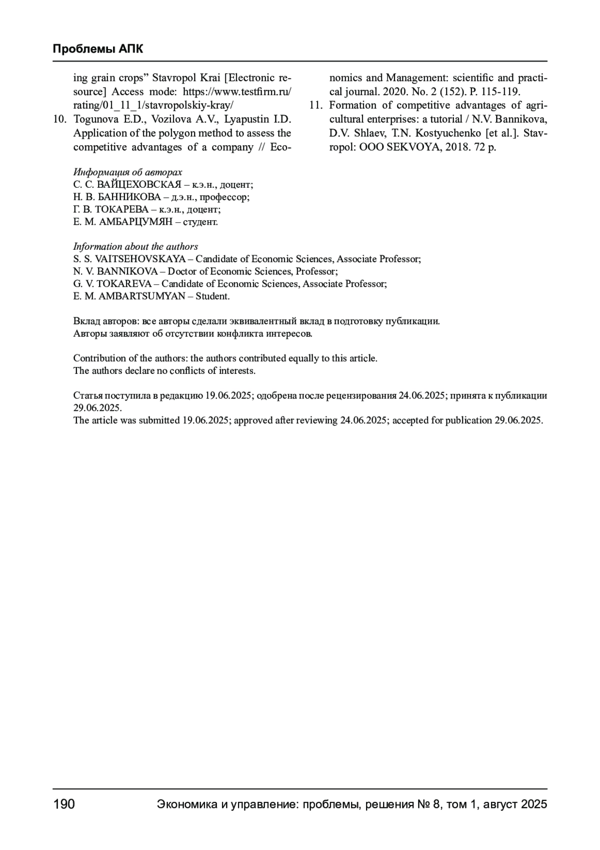 11. Формирование конкурентных преимуществ сельскохозяйственных предприятий: учебное пособие / Н.В. Банникова, Д.В. Шлаев, Т.Н. Костюченко [и др.]. Ставрополь: ООО “СЕКВОЙЯ”, 2018. 72 с. EDN: YXEPZR