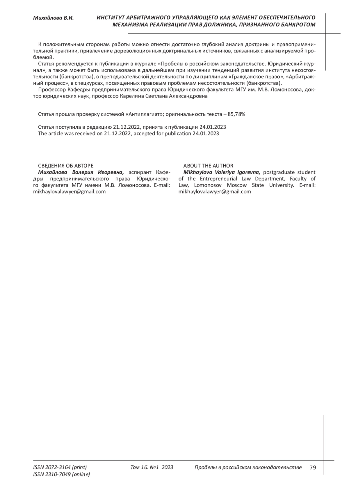 Арбитражный управляющий как ключевая фигура процесса несостоятельности (банкротства) занимает важную позицию в иерархии факторов, влияющих на судьбу должника в части возможности восстановления платежеспособности. В связи с этим потенциалом автор настоящей статьи рассматривает институт арбитражного управляющего с точки зрения концепции обеспечительного механизма реализации прав должника и приходит к выводу о том, что, с одной стороны, такой менеджер является гарантом прав должника, признанного банкротом, с другой стороны, данный институт переживает в настоящее время определенный кризис, выход из которого будет иметь решающее значение для всего обеспечительного механизма.