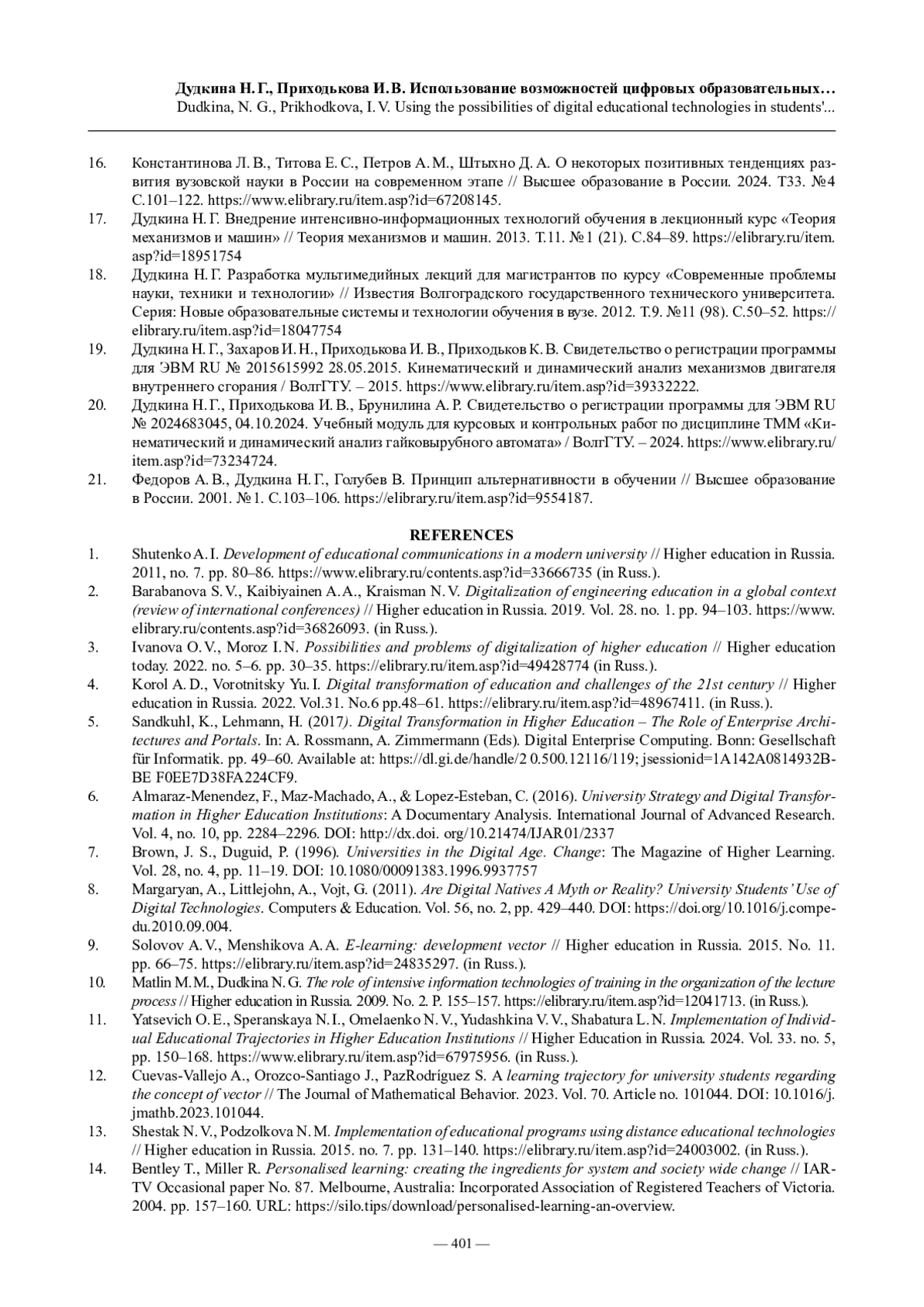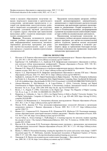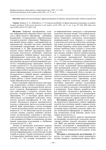 ДУДКИНА Н. Г., ПРИХОДЬКОВА И. В. ИСПОЛЬЗОВАНИЕ ВОЗМОЖНОСТЕЙ ЦИФРОВЫХ ОБРАЗОВАТЕЛЬНЫХ ТЕХНОЛОГИЙ В НАУЧНО-ИССЛЕДОВАТЕЛЬСКОЙ ДЕЯТЕЛЬНОСТИ СТУДЕНТОВ // ПРОФЕССИОНАЛЬНОЕ ОБРАЗОВАНИЕ В СОВРЕМЕННОМ МИРЕ. 2025. Т. 15, № 2