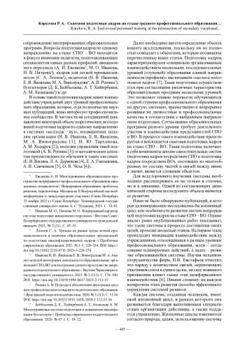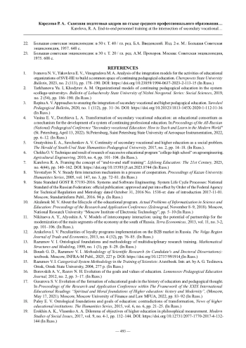 7. Карелова Р. А. Конструирование понятия «сквозная подготовка кадров» // Непрерывное образование: XXI век. 2023. № 4 (44). С. 140-162. https://doi.org/https://doi.org/10.15393/j5.art.2023.8744
