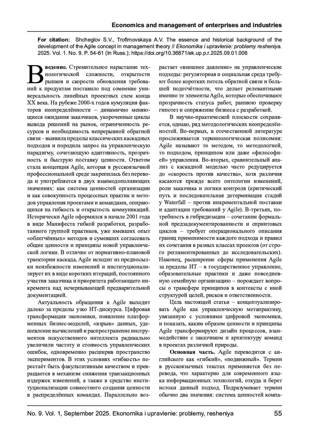 Agile переводится с английского как «гибкий», «подвижный». Термин в русскоязычных текстах применяется без перевода, что характерно для современного языка информационных технологий, откуда и берет истоки данный подход. В статье авторы рассмотрели понятие «Agile», историю возникновения, научных последователей гибкой теории управления, а также возможности применения в России. Сделан вывод о том, что данные системы хорошо адаптируемы и применимы в разных сферах: от IT до финансов и реального сектора. Потому закономерно полагать, что и в части управления закупками и в госсекторе, и в бизнесе данные подходы могут быть эффективными и должны развиваться.
