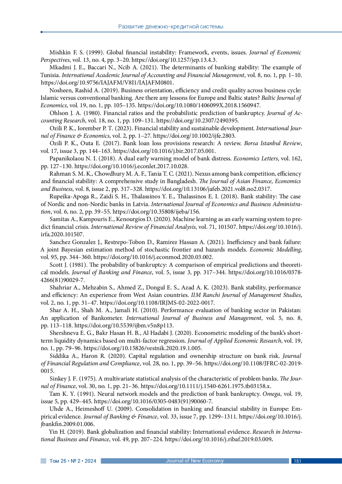 35. Li Z., Feng C., Tang Y. (2022). Bank efficiency and failure prediction: A nonparametric and dynamic model based on data envelopment analysis. Annals of Operations Research, vol. 315, pp. 279-315. DOI: 10.1007/s10479-022-04597-4 EDN: KFBLZT