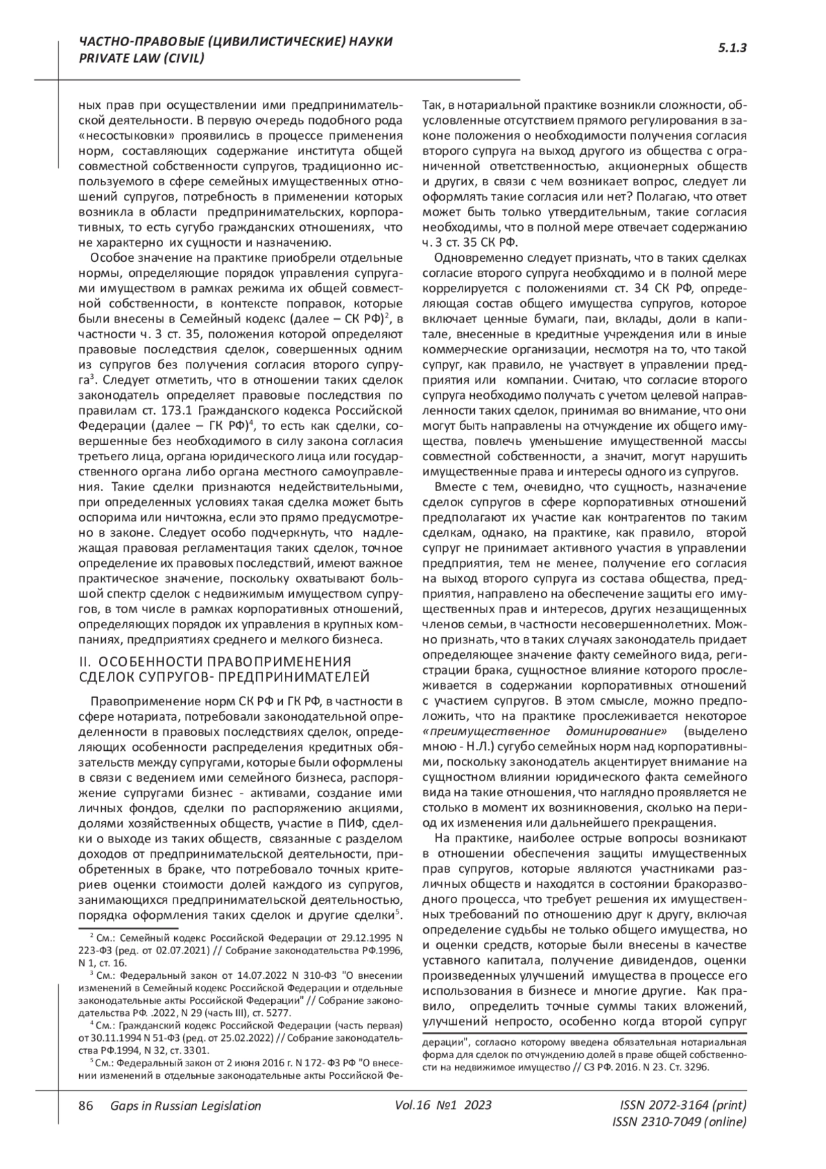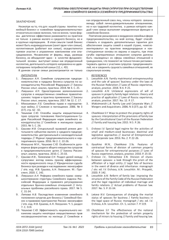 Letova N.V. Consequences of changing the marital status of spouses for business / Family business in the legal space of Russia: monograph / otv. ed. I.V. Ershova, A.N. Levushkin. Ch. 5, section 7. P. 519.