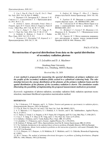 Лелюхин А. С., Муслимов Д. А. Восстановление спектральных распределений по данным о пространственном распределении фотонов вторичного излучения 10