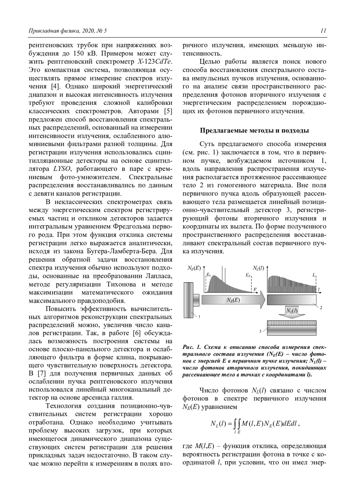 В работе предложен новый способ измерения спектральных распределений первичного излучения по профилю полей вторичного излучения, возбуждаемых в цилиндрическом рассеивающем теле. Показана связь между распределением по энергии фотонов первичного пучка излучения и распределением в пространстве порождаемых ими фотонов вторичного излучения. Приведены результаты моделирования, иллюстрирующие возможность реализации предложенного способа измерений